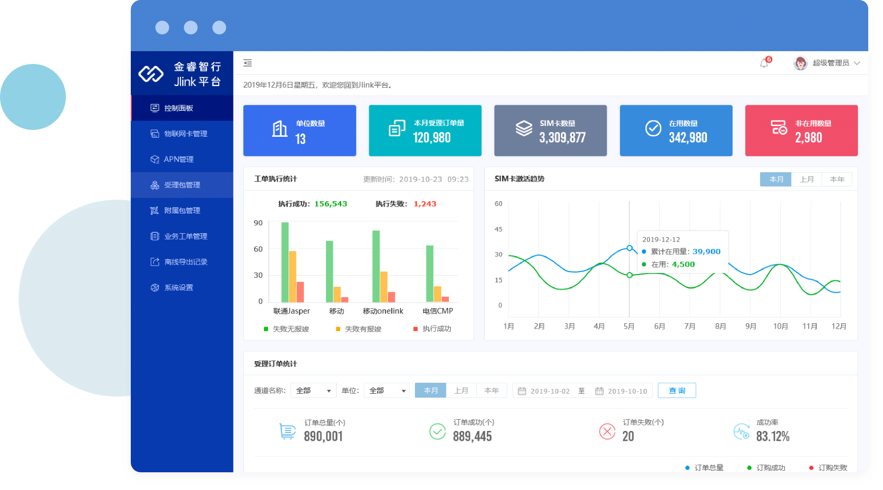 工单统一至平台处理,支持多终端,详细展示工单的执行状态、SIM卡信息,并且系统自动将执行失败的工单单独展示,方便运营人员快速发现问题后进行处理!